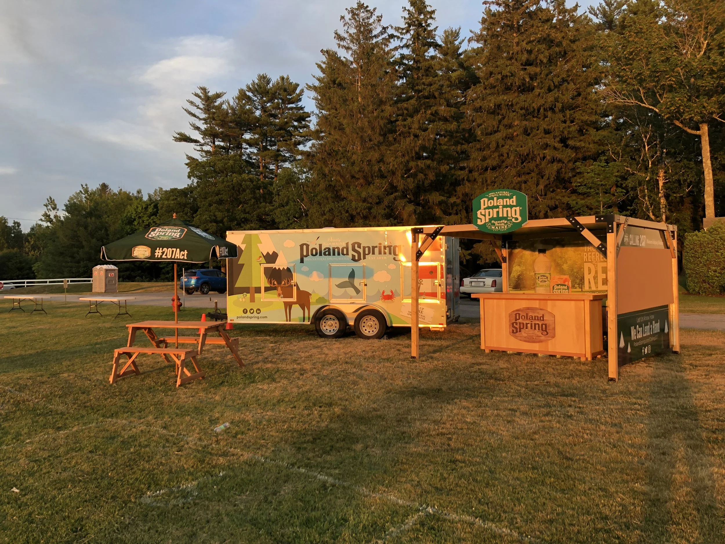 Tour Maine supporting local events with the Poland Spring hydration station – encouraging usage of reusable plastic bottles and sampling our sparkling waters.